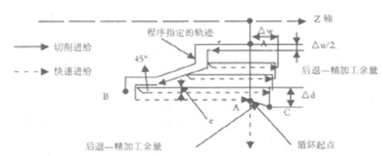 該系統(tǒng)中的 G71 指令粗加工路徑如下圖所示