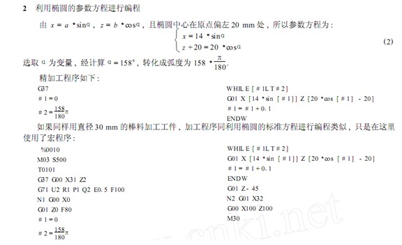 以上程序適用于華中世紀(jì)星系統(tǒng) , 采用半徑編程 , 如果使用直徑編程則需要把 x 的數(shù)值放大 2 倍. 在使用標(biāo)準(zhǔn)方程時(shí)需要注意判斷好 x 的正負(fù)號. 如果用 FANUC 系統(tǒng) , 采用參數(shù)方程時(shí) , 要使用角度值 ,不能用弧度值