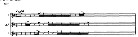 上例中, 第三雙簧管仍然運(yùn)用第二雙簧管的節(jié)奏, 但順序卻已經(jīng)改變, 形成循環(huán)方式的使用。